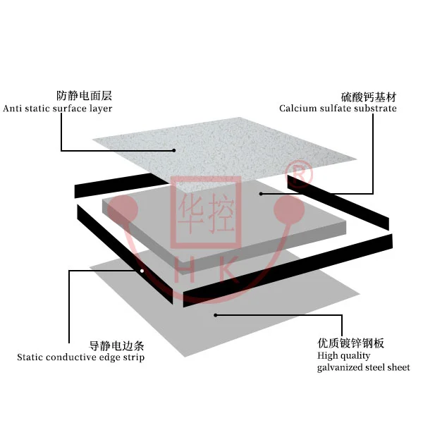 華控硫酸鈣防靜電地板采用質量好的硫酸鈣基材,表面粘貼防靜電貼面(如HPL或PVC),能夠有效防止靜電的產生和積聚,保護設備和人員安全。