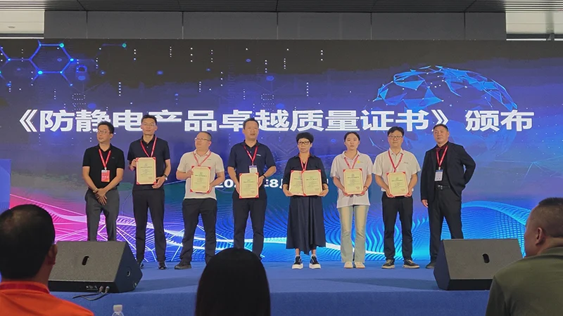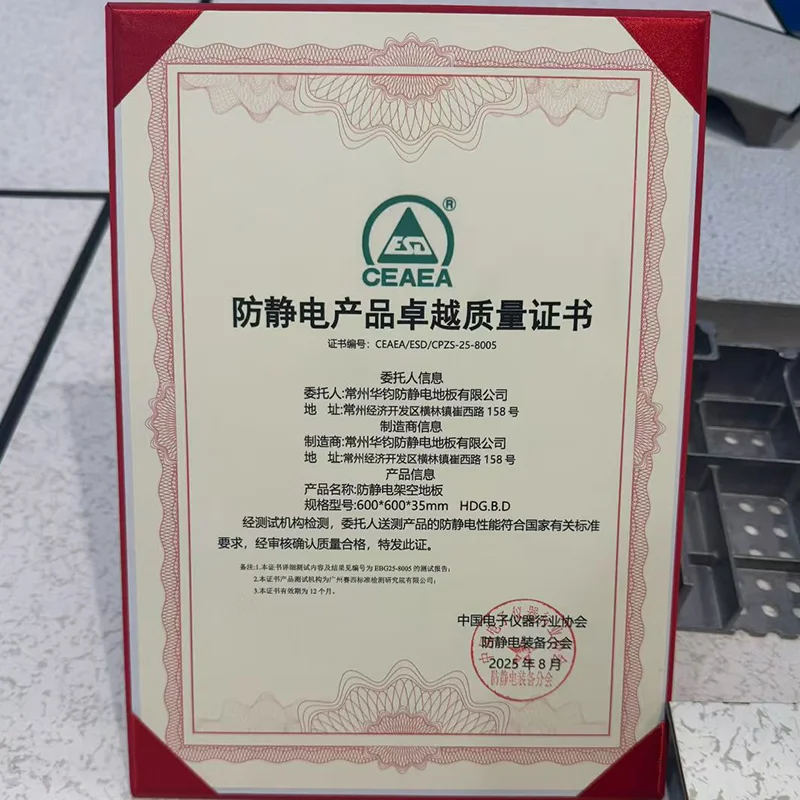 電子設備運行時,內部元件對靜電極為敏感,稍有干擾,就可能出現數據丟失、程序出錯甚至硬件損壞的情況。智博會這樣的大型展會,眾多參展商帶來的高價值設備和精密儀器,一旦遭受靜電破壞,損失不可估量。人員頻繁走動,衣物摩擦易生靜電,各類電子設備密集使用產生的電磁干擾,也會引發靜電問題。所以,消除靜電隱患成為保障展會順利開展的關鍵。常州華鈞防靜電地板有限公司在“2025 智造業靜電放電(ESD)防護技術高峰論壇”中榮獲《防靜電產品卓越質量證書》。