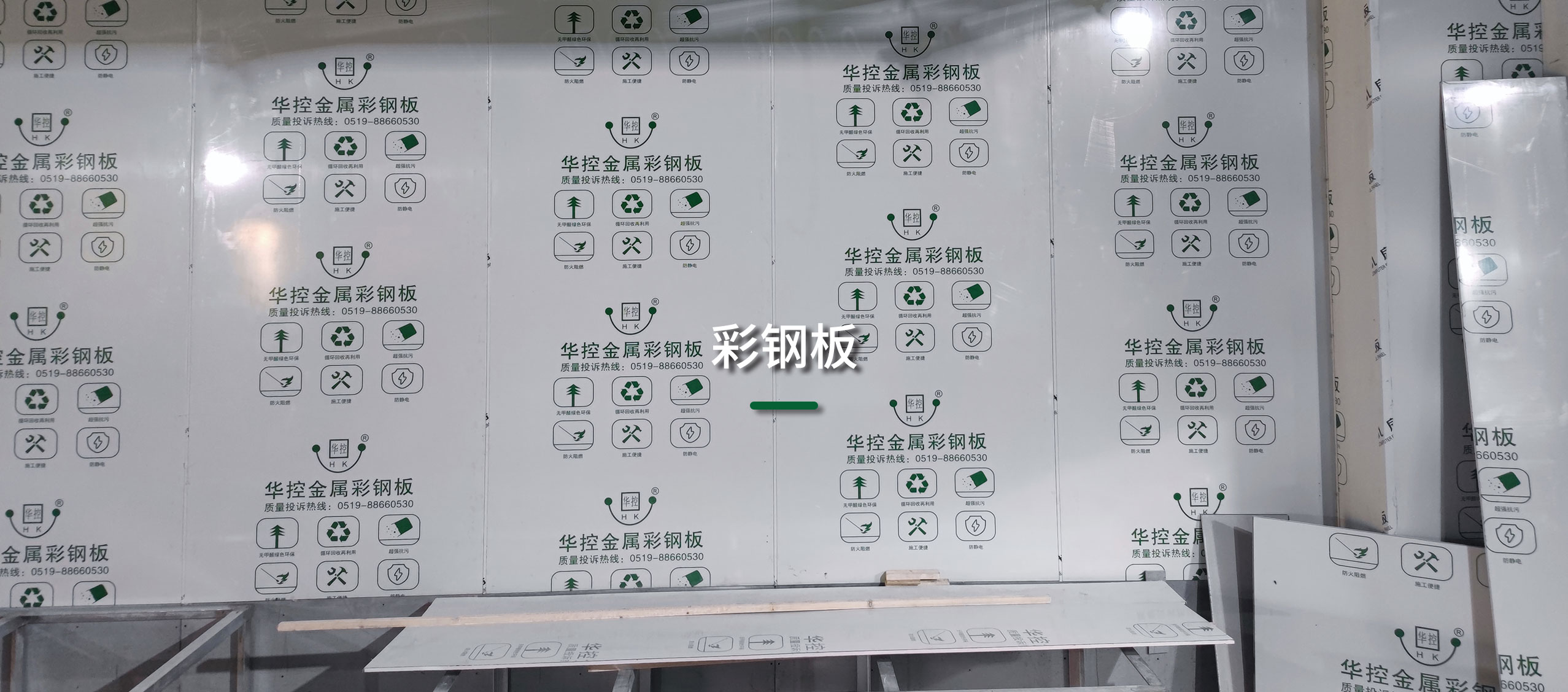 2. 墻板由0.6/0.8/1.0mm防銹的熱溶鍍鋅烤漆鋼板、12mm高質防火石膏板、環保雙組份強力膠水精制而成、面層有保護膜;